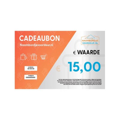 Wilt u iemand een origineel cadeau geven en heeft u geen idee wat u het beste kan kopen? Schaf dan een digitale cadeaubon van Naambordjevoordeur.nl aan. De ontvanger van dit geschenk kan dan zelf een keuze maken uit onze collectie. Wij hebben een groot aanbod, dus er is voor iedereen altijd wel iets leuks bij. Wat dacht u bijvoorbeeld van een nieuw naambord bij de voordeur, een stijlvol huisnummer of een fraaie muursticker in de woonkamer? Een digitale cadeaubon is bij ons te bestellen in waardes vanaf vijf euro. Hiermee is het mogelijk een product uit te zoeken op onze website. De waardebonnen zijn één jaar geldig. Zoek nu online een cadeaubon bij ons uit. De bestelde cadeaubonnen versturen wij per post of digitaal. Bij verzending via de post geldt het volgende: als u voor 15.00 uur bestelt, verzenden wij nog dezelfde dag via PostNL. Een digitale cadeaubon ontvangt u per mail.