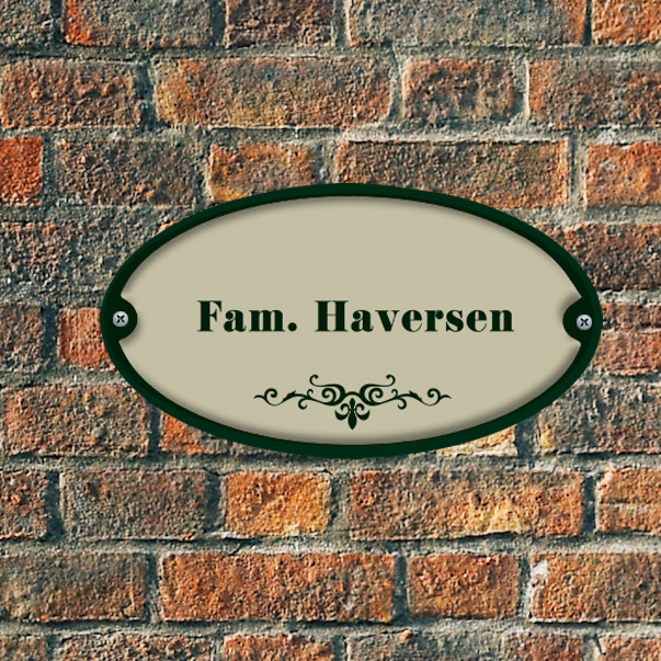 Een mooi naambordje in de stijl van emaille 20x11m. Het materiaal van dit naambordje 5mm dik, beige kunststof en de emaille uitstraling printen wij inclusief uw tekst/afbeelding met onze UV printer op de achterzijde.