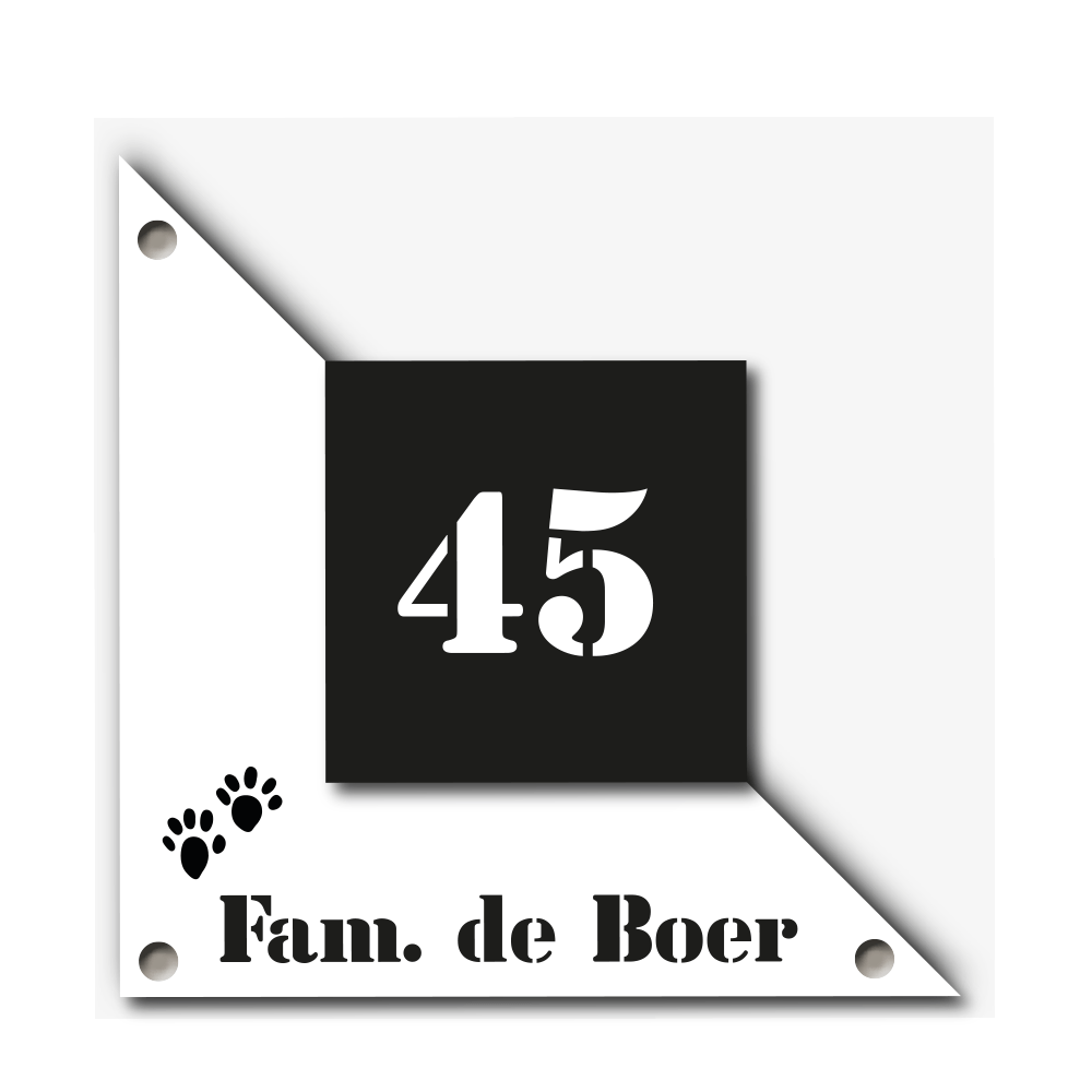 Start gemakkelijk online met het personaliseren van uw naambordje. Dit is een must-have voor uw woning. Uniek in zijn soort, dit mede door zijn unieke driehoeksvorm. Het bordje wordt geproduceerd in eigen fabriek. Heeft u vragen over de mogelijkheden qua inhoud? Neem gerust eens contact met ons op, wij staan u graag te woord.