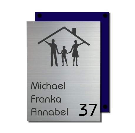 Dit luxe naambord van RVS-kunststof is een aanwinst voor uw deurpost. Bord heeft een blauwe kunststof achterplaat waar bovenop een RVS-look plaat is gemonteerd. Het formaat van dit bordje is 20 x 25 cm.