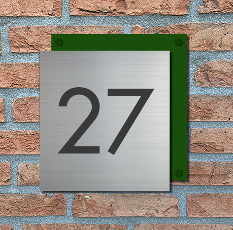 Dit luxe naambord van RVS-kunststof is een aanwinst voor uw deurpost. Bord heeft een groene kunststof achterplaat waar bovenop een RVS-look plaat is gemonteerd. Het formaat van dit bordje is 15 x 15