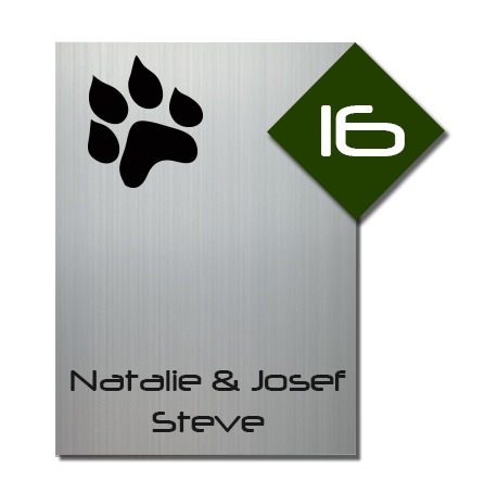 Dit bordje is een aanwinst voor bij uw deurpost. RVS-look naambordje voorzien van donkergroen acrylplaatje met daarop het huisnummer. Afmeting van dit bordje zit op 15 x 20 cm.