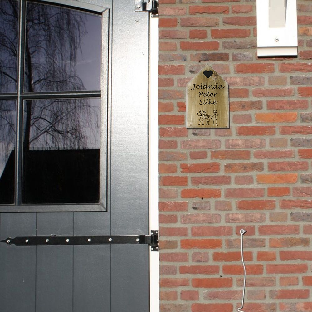Leuk naambordje in de vorm van een huisje. Het bordje is gemaakt van steigerhout met het formaat 20 x 30 cm. Uniek en origineel naambordje. Geef ook eens een naambordje codeau aan je vrienden als die gaan verhuizen!