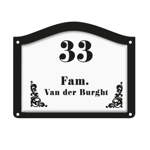 Dit naambordje is een aanwinst voor uw woning. Uiteraard ontvangt u erbij een bevestigtingssetje bestaande uit bolkopschroeven voor een mooie uitstraling, pluggen en transparante kunststof afstandhouders. Na ontvangst van het naambordje emaille-look met een witte achtergrond, 24x19 cm, kunt u dus meteen aan de slag. In onze online ontwerp module heeft u de mogelijkheid om de opdruk van het naambordje zelf te ontwerpen naar eigen wens. Bent u tevreden met het ontwerp? Zet de bestelling dan door en eventuele opmerkingen kunt u in het opmerkingenveld, helemaal aan het einde van uw opdracht, plaatsen. Na bestelling kunt u het bordje binnen 1 à 2 werkdagen bij u verwachten.