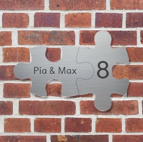 Naambordje RVS-look | Alu-Line puzzelstuk dubbel 30x18 cm