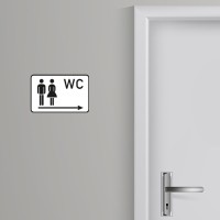 Leuke sticker met pijl naar rechts voor algemene wc aanduiding. Formaat 15 x 10 cm.